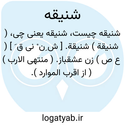( شنیقة ) شنیقة. [ ش ِن ْ نی ق َ ] ( ع ص ) زن عشقباز. ( منتهی الارب ) ( از اقرب الموارد ).