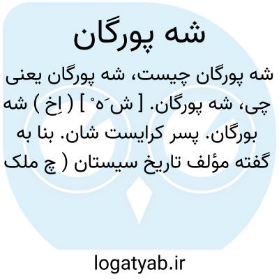 شه پورگان. [ ش َه ْ ] ( اِخ ) شه بورگان. پسر کرایست شان. بنا به گفته مؤلف تاریخ سیستان ( چ ملک الشعراء بهار ) وی از شاهان کیان است که شهر سیستان در زمان او مجدداً آباد گردیددر چهارصد و چهل سال شمسی. ( از تاریخ سیستان ص 4 ).