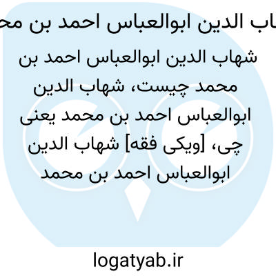 [ویکی فقه] شهاب الدین ابوالعباس احمد بن محمد (ابهام زدایی). شهاب الدین ابوالعباس احمد بن محمد ممکن است اشاره به اشخاص و شخصیت های ذیل باشد: • ابن زریق شهاب الدین ابوالعباس احمد بن محمد آل قدامه، شهاب الدّین ابوالعباس احمد بن محمد، از شخصیت های آلِ قُدامه• ابن قاضی شهبه شهاب الدین ابوالعباس احمد بن محمد، ابوالعباس احمد بن محمد بن عمر، فقیه و دانشمند، یکی از شخصیت های خاندان اِبْن ِ قاضی ِ شُهْبه • ابن هائم ابوالعباس شهاب الدین احمد بن محمد مقدسی، اِبْنِ هائِم، ابوالعباس شهاب الدین احمد بن محمد بن عماد بن علی مقدسی، ریاضی دان، فقیه، نحوی و ادیب مصری