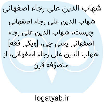 [ویکی فقه] شهاب الدین علی رجاء اصفهانی، از متصوّفه قرن هفتم هجری در اصفهان و از مریدان شهاب الدّین ابوحفص عمر سهروردی بوده است.