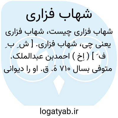 لغت نامه دهخدا شهاب فزاری. [ ش ِ ب ِ ف َ ] ( اِخ ) احمدبن عبدالملک. متوفی بسال 710 هَ. ق. او را دیوانی است. ( از کشف الظنون ).