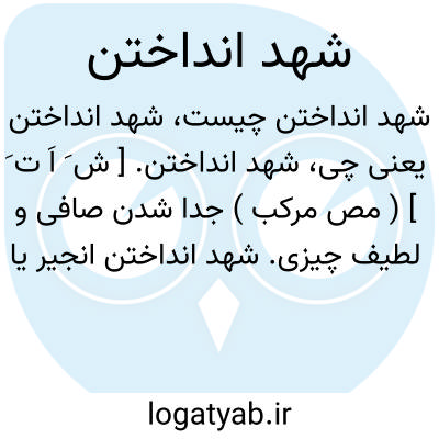 شهد انداختن. [ ش َ اَ ت َ ] ( مص مرکب ) جدا شدن صافی و لطیف چیزی. شهد انداختن انجیر یا خرما یا عسل و مانند آن در ظرفی؛ جدا شدن صافی و لطیف آن. ( یادداشت مؤلف ).