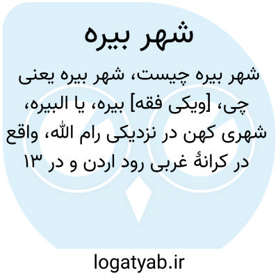 [ویکی فقه] بیره، یا البیره، شهری کهن در نزدیکی رام الله، واقع در کرانۀ غربی رود اردن و در ۱۳ کیلومتری شمال غربی بیت المقدس می باشد.
