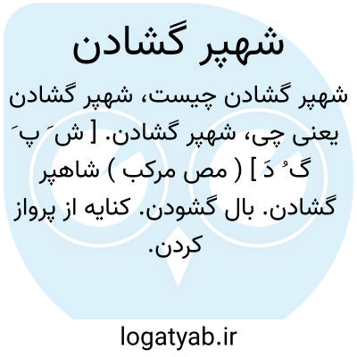 شهپر گشادن. [ ش َ پ َ گ ُ دَ ] ( مص مرکب ) شاهپر گشادن. بال گشودن. کنایه از پرواز کردن.