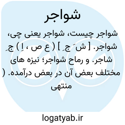 شواجر. [ ش َ ج ِ ] ( ع ص، اِ ) ج ِ شاجر. و رماح شواجر؛ نیزه های مختلف بعض آن در بعض درآمده. ( منتهی الارب ) ( از ناظم الاطباء ). || ج ِ شاجرة. ( ناظم الاطباء ). و رجوع به شاجر و شاجرة شود.