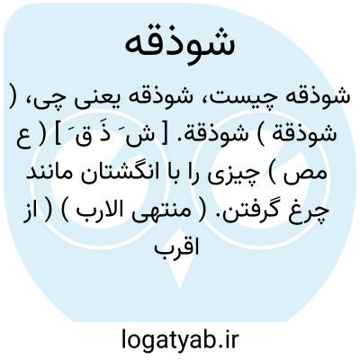 ( شوذقة ) شوذقة. [ ش َ ذَ ق َ ] ( ع مص ) چیزی را با انگشتان مانند چرغ گرفتن. ( منتهی الارب ) ( از اقرب الموارد ) ( ناظم الاطباء ).