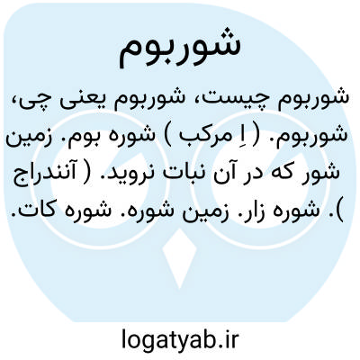شوربوم. ( اِ مرکب ) شوره بوم. زمین شور که در آن نبات نروید. ( آنندراج ). شوره زار. زمین شوره. شوره کات.