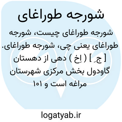 شورجه طوراغای. [ ج ِ ] ( اِخ ) دهی از دهستان گاودول بخش مرکزی شهرستان مراغه است و 101 تن سکنه دارد. ( از فرهنگ جغرافیایی ایران ج 4 ).