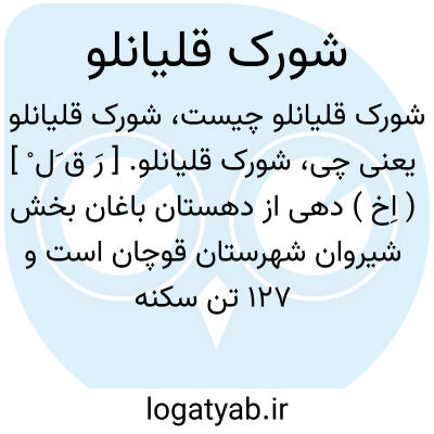 شورک قلیانلو. [ رَ ق َل ْ ] ( اِخ ) دهی از دهستان باغان بخش شیروان شهرستان قوچان است و 127 تن سکنه دارد. ( از فرهنگ جغرافیایی ایران ج 9 ).