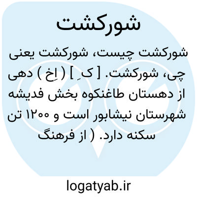 شورکشت. [ ک ِ ] ( اِخ ) دهی از دهستان طاغنکوه بخش فدیشه شهرستان نیشابور است و 1200 تن سکنه دارد. ( از فرهنگ جغرافیایی ایران ج 9 ).