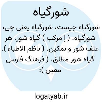 شورگیاه. ( اِ مرکب ) گیاه شور. هر علف شور و نمکین. ( ناظم الاطباء ). گیاه شور مطلق. ( فرهنگ فارسی معین ): نبت مالح؛ شورگیاه.هجیر؛ شورگیاه خشک شکسته. ( منتهی الارب ). حمض. رمث. سرمق. ( یادداشت مؤلف ).