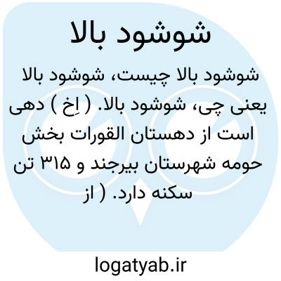 شوشود بالا. ( اِخ ) دهی است از دهستان القورات بخش حومه شهرستان بیرجند و 315 تن سکنه دارد. ( از فرهنگ جغرافیایی ایران ج 9 ).