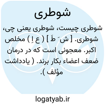 شوطری. [ ش َ طَ ] ( ع اِ ) مخلص اکبر. معجونی است که در درمان ضعف اعضاء بکار برند. ( یادداشت مؤلف ).