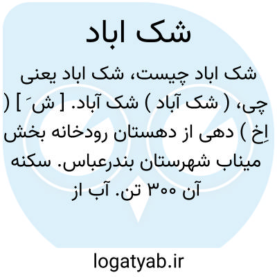 ( شک آباد ) شک آباد. [ ش َ ] ( اِخ ) دهی از دهستان رودخانه بخش میناب شهرستان بندرعباس. سکنه آن 300 تن. آب از رودخانه است. محصول عمده خرما و غلات. مزارع لیمویی، بارانی جزء این ده میباشد. ( از فرهنگ جغرافیایی ایران ج 8 ).
