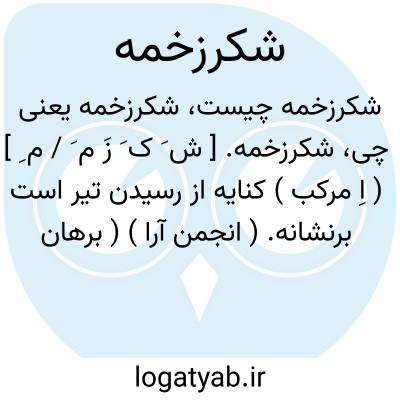 شکرزخمه. [ ش َ ک َ زَ م َ / م ِ ] ( اِ مرکب ) کنایه از رسیدن تیر است برنشانه. ( انجمن آرا ) ( برهان ) ( آنندراج ). تیری که بر نشانه رسد و برخورد کند. ( ناظم الاطباء ):