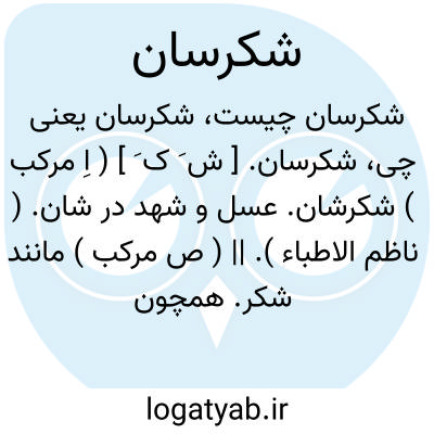 شکرسان. [ ش َ ک َ ] ( اِ مرکب ) شکرشان. عسل و شهد در شان. ( ناظم الاطباء ). || ( ص مرکب ) مانند شکر. همچون شکر. شکروار. شکرشان.