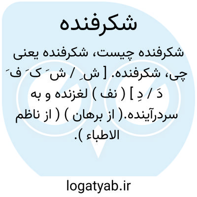 شکرفنده. [ ش ِ / ش َ ک َ ف َ دَ / دِ ] ( نف ) لغزنده و به سردرآینده.( از برهان ) ( از ناظم الاطباء ). لغزیدن و بسر درآمدن اسب، در برهان آورده و شکرفیدن را مصدر آن شمرده، هردو بدین معنی خطاست، اصل شکوخ و شکوخیدن است. ( انجمن آرا ) ( آنندراج ). رجوع به شکوخیدن شود. || اسبی که سکندری خورد. ( ناظم الاطباء ) ( از برهان ).