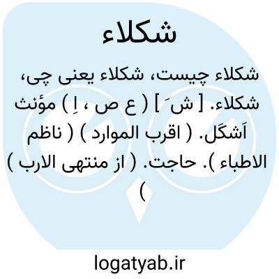 شکلاء. [ ش َ ] ( ع ص، اِ ) مؤنث اَشکَل. ( اقرب الموارد ) ( ناظم الاطباء ). حاجت. ( از منتهی الارب ) ( آنندراج ) ( مهذب الاسماء ) ( اقرب الموارد ) ( ناظم الاطباء ). رجوع به اشکل شود. || گوسپند تهیگاه سپید. ( ناظم الاطباء ) ( منتهی الارب ) ( آنندراج ) ( از اقرب الموارد ). گوسپند سیاه. ( مهذب الاسماء ). گوسپند سپید. ( دهار ). || چشم سرخ و سپید. ج، شُکل. ( منتهی الارب ) ( آنندراج ) ( ناظم الاطباء ). چشم سرخ. ( مهذب الاسماء ).