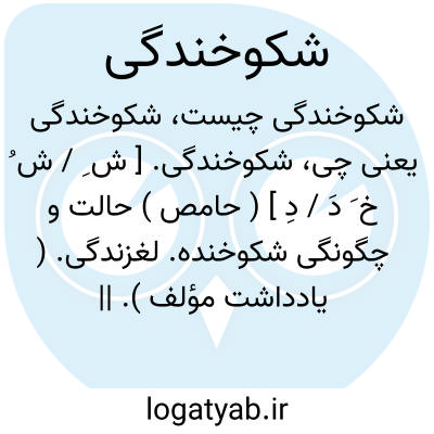 شکوخندگی. [ ش ِ / ش ُ خ َ دَ / دِ ] ( حامص ) حالت و چگونگی شکوخنده. لغزندگی. ( یادداشت مؤلف ). || لغزیدگی. افتادگی. ( ناظم الاطباء ).