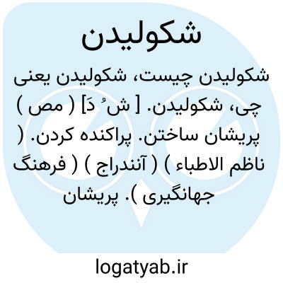 شکولیدن. [ ش ُ دَ] ( مص ) پریشان ساختن. پراکنده کردن. ( ناظم الاطباء ) ( آنندراج ) ( فرهنگ جهانگیری ). پریشان کردن. ( از انجمن آرا ) ( از برهان ). پراکنده کردن. ( غیاث ):