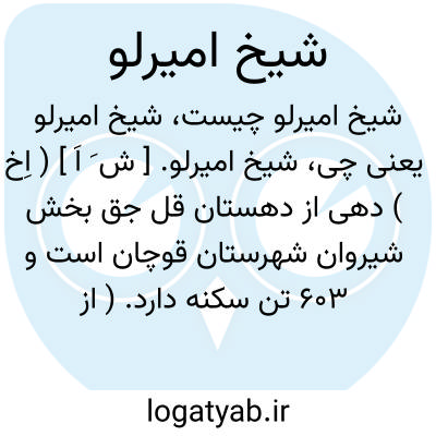 شیخ امیرلو. [ ش َ اَ ] ( اِخ ) دهی از دهستان قل جق بخش شیروان شهرستان قوچان است و 603 تن سکنه دارد. ( از فرهنگ جغرافیائی ایران ج 9 ).