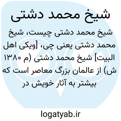 [ویکی اهل البیت] شیخ محمد دشتی (م 1380 ش) از عالمان بزرگ معاصر است که بیشتر به آثار خویش در زمینه نهج البلاغه و به ویژه ترجمه نهج البلاغه و معجم نهج البلاغه معروف و مشهور است.