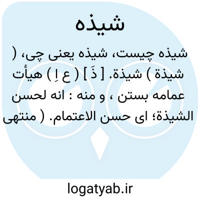 ( شیذة ) شیذة. [ ذَ ] ( ع اِ ) هیأت عمامه بستن، و منه: انه لحسن الشیذة؛ ای حسن الاعتمام. ( منتهی الارب ). یقال: فلان حسن الشیذة؛ ای العمة. ( اقرب الموارد ).