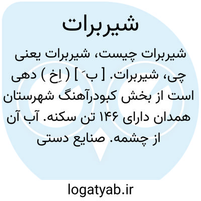 شیربرات. [ ب َ ] ( اِخ ) دهی است از بخش کبودرآهنگ شهرستان همدان دارای 146 تن سکنه. آب آن از چشمه. صنایع دستی زنان قالیبافی. راه آن اتومبیلرو. ( از فرهنگ جغرافیائی ایران ج 5 ).