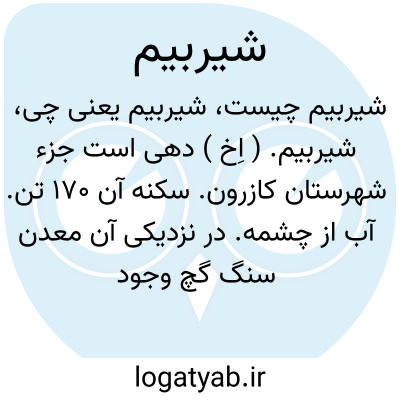 شیربیم. ( اِخ ) دهی است جزء شهرستان کازرون. سکنه آن 170 تن. آب از چشمه. در نزدیکی آن معدن سنگ گچ وجود دارد. ( از فرهنگ جغرافیائی ایران ج 7 ).