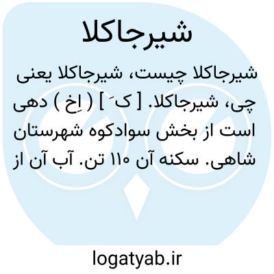 شیرجاکلا. [ ک َ ] ( اِخ ) دهی است از بخش سوادکوه شهرستان شاهی. سکنه آن 110 تن. آب آن از رودخانه تالار. ( از فرهنگ جغرافیائی ایران ج 3 ).