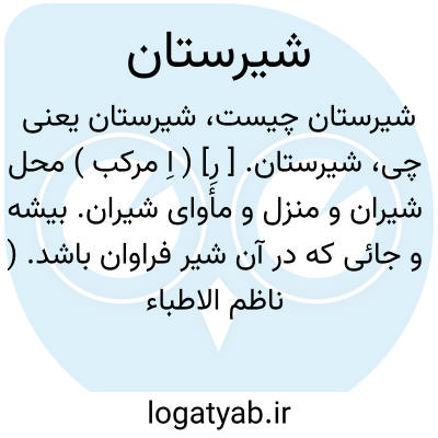 لغت نامه دهخدا شیرستان. [ رِ] ( اِ مرکب ) محل شیران و منزل و مأوای شیران. بیشه و جائی که در آن شیر فراوان باشد. ( ناظم الاطباء ).