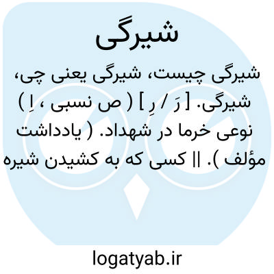 شیرگی. [ رَ / رِ ] ( ص نسبی، اِ ) نوعی خرما در شهداد. ( یادداشت مؤلف ). || کسی که به کشیدن شیره تریاک عادت کرده. ( فرهنگ فارسی معین ). شیره ای.