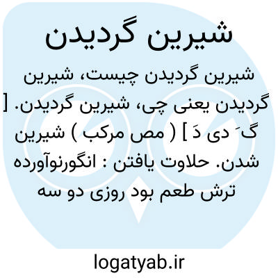بر تو شیرین گردد و ایجاد حق.مولوی.- شیرین گردیدن در دل و چشم کسی؛ مطلوب و مطبوع شدن در نظر وی: در دل و چشم خلایق جا کرده و شیرین گردد. ( مجالس سعدی ص 20 ). رجوع به شیرین شدن شود.