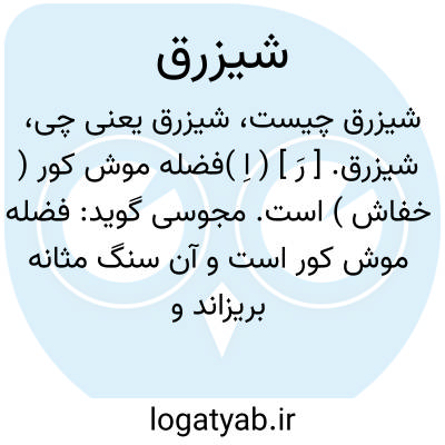 شیزرق. [ رَ ] ( اِ )فضله موش کور ( خفاش ) است. مجوسی گوید: فضله موش کور است و آن سنگ مثانه بریزاند و دیگران گفته اند که شیزرق را اگر چون سرمه بچشم کشند بیاض [ لک سفید ] را زایل کند. ( یادداشت مؤلف ). فضله موش کور، و برخی گفته اند بول آن است. ( از مفردات ابن بیطار ص 75 ).