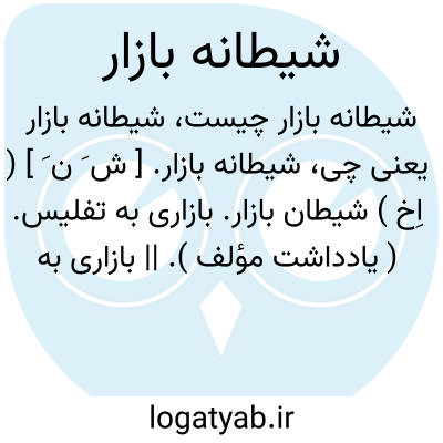لغت نامه دهخدا شیطانه بازار. [ ش َ ن َ ] ( اِخ ) شیطان بازار. بازاری به تفلیس. ( یادداشت مؤلف ). || بازاری به زنجان. || بازاری به اسالم طوالش گیلان.