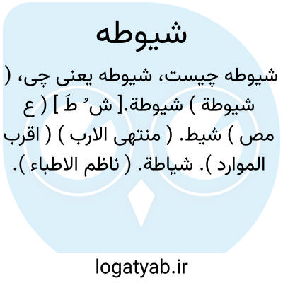( شیوطة ) شیوطة.[ ش ُ طَ ] ( ع مص ) شیط. ( منتهی الارب ) ( اقرب الموارد ). شیاطة. ( ناظم الاطباء ). رجوع به شیاطة و شیط شود.