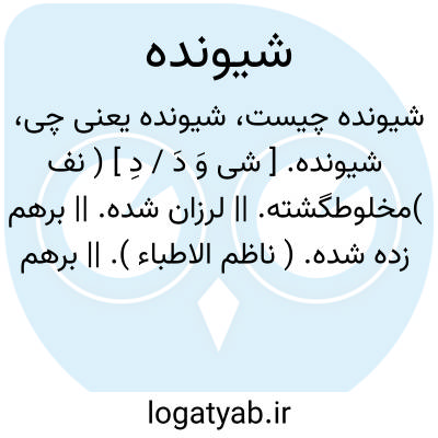 شیونده. [ شی وَ دَ / دِ ] ( نف )مخلوطگشته. || لرزان شده. || برهم زده شده. ( ناظم الاطباء ). || برهم زننده. آمیزنده. || لرزنده. ( فرهنگ فارسی معین ).