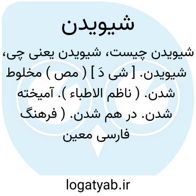 لغت نامه دهخدا شیویدن. [ شی دَ ] ( مص ) مخلوط شدن. ( ناظم الاطباء ). آمیخته شدن. در هم شدن. ( فرهنگ فارسی معین ). || آمیختن و مخلوط کردن. ( ناظم الاطباء ). || لرزیدن. ( منتهی الارب ). رجوع به شیوانیدن شود.