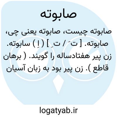 صابوته. [ ت َ / ت ِ ] ( اِ ) سابوته. زن پیر هفتادساله را گویند. ( برهان قاطع ). زن پیر بود به زبان آسیان [یعنی مردم آس ]. قریع گوید: