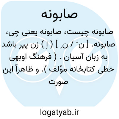 صابونه. [ ن َ / ن ِ ] ( اِ ) زن پیر باشد به زبان آسیان. ( فرهنگ اوبهی خطی کتابخانه مؤلف ). و ظاهراً این صورت مصحف صابوته باشد. رجوع به صابوته در همین لغت نامه و لغت نامه اسدی شود.