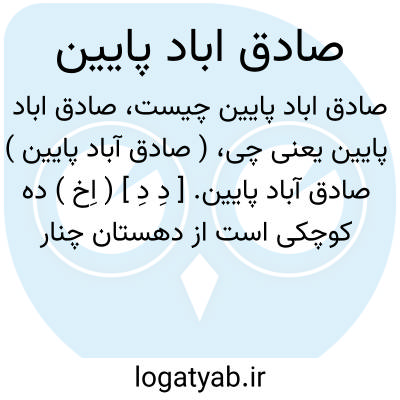 ( صادق آباد پایین ) صادق آباد پایین. [ دِ دِ ] ( اِخ ) ده کوچکی است از دهستان چنار بخش مرکزی شهرستان آباده، 9000گزی جنوب خاوری آباده، 2000گزی خاوری شوسه آباده به اقلید. سکنه 20 نفر. ( از فرهنگ جغرافیائی ایران ج 7 ).