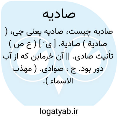 ( صادیة ) صادیة. [ ی َ ] ( ع ص ) تأنیث صادی. || آن خرمابن که از آب دور بود. ج، صوادی. ( مهذب الاسماء ).