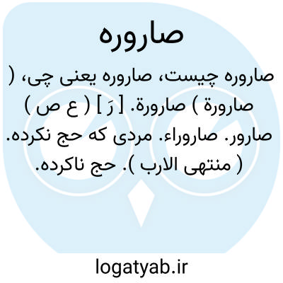 ( صارورة ) صارورة. [ رَ ] ( ع ص ) صارور. صاروراء. مردی که حج نکرده. ( منتهی الارب ). حج ناکرده. ( دستورالاخوان ) ( مهذب الاسماء ). || آنکه گرد زن نگردد. ( منتهی الارب ).