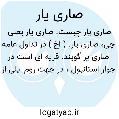 صاری یار. ( اِخ ) در تداول عامه صاری یر گویند. قریه ای است در جوار استانبول، در جهت روم ایلی از میان بوغاز، بالای بیوک دره، در طرفین دره و در میان دو کوه واقع شده. دامنه های ده از درخت شاه بلوط پوشیده و آبهای خنگار و چرچر منظره ای بسیار زیبا و جالب بدان داده است و هر نقطه آن تفرجگاه بسیار دلکش و روح پروری است و به مناسبت نزدیکی آن با استانبول در فصل تابستان مردم بسیار بدانجا روند. ( قاموس الاعلام ترکی ).