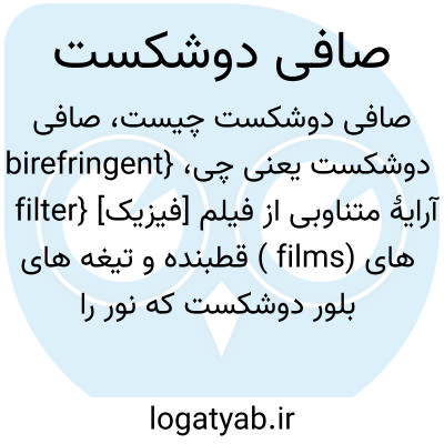 {birefringent filter} [فیزیک] آرایۀ متناوبی از فیلم های (films ) قطبنده و تیغه های بلور دوشکست که نور را به صورت نوارهای طولِ موجی با فاصله های دورازهم عبور می دهد