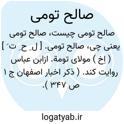 صالح تومی. [ ل ِ ح ِ ت َ ] ( اِخ ) مولای تومة. ازابن عباس روایت کند. ( ذکر اخبار اصفهان ج 1 ص 347 ).