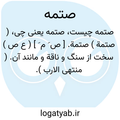 ( صتمة ) صتمة. [ ص َ م َ ] ( ع ص ) سخت از سنگ و ناقة و مانند آن. ( منتهی الارب ).