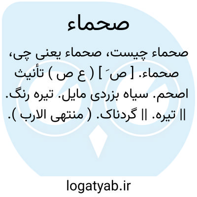 صحماء. [ ص َ ] ( ع ص ) تأنیث اصحم. سیاه بزردی مایل. تیره رنگ. || تیره. || گردناک. ( منتهی الارب ).