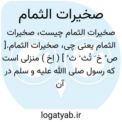 صخیرات الثمام.[ ص ُ خ َ تُث ْ ث ُ ] ( اِخ ) منزلی است که رسول صلی اﷲ علیه و سلم در آن فرود آمد... چنین است در قاموس و گویا تصحیف صخیرات الیمام است یا آنکه موضع دیگری است.در مجمع در باب صاد مع الحاء آورد: رای رجلا یقطع سمرة بصحیرات الیمام، و آن نام موضعی است و یمام درختی و مرغی است و آن مصغر جمع صخرة است و هی ارض لینه تکون وسط الحرة، و تفسیر یمام به مرغ درست است لکن معروف در درخت ثمام است به ثاءِ مثلثه. ( منتهی الارب ).
