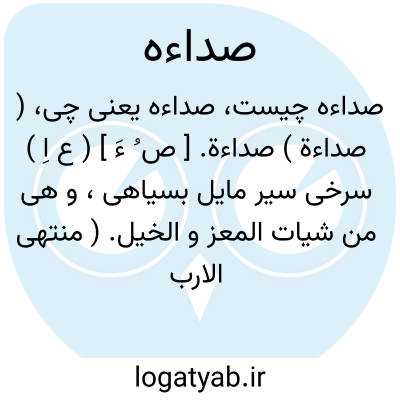 ( صداءة ) صداءة. [ ص ُ ءَ ] ( ع اِ ) سرخی سیر مایل بسیاهی، و هی من شیات المعز و الخیل. ( منتهی الارب ). شقرة الی السواد او سواد مشرب حمرة. ( قطر المحیط ).